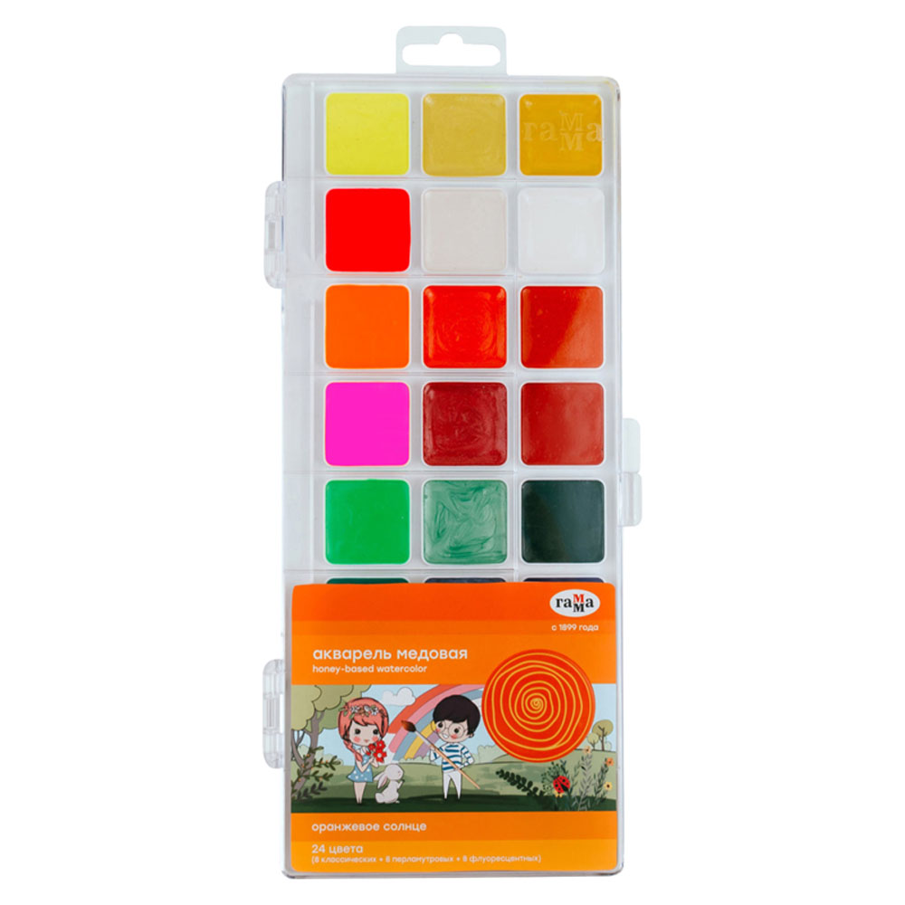 Краски акварельные 24цв. Гамма Оранжевое солнце 8 перламутр.+ 8 флуор.+ 8 классич. 291020209