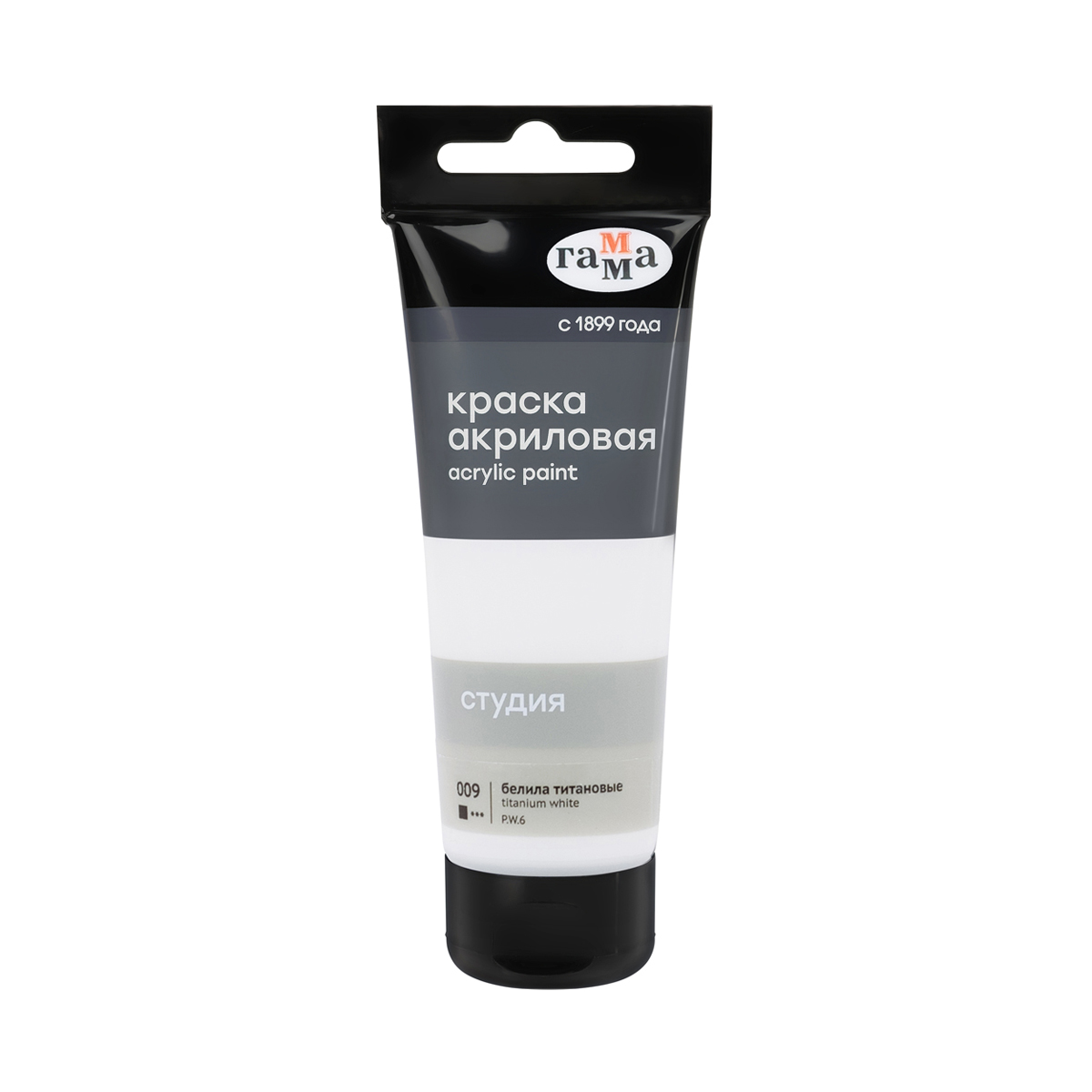 Код товара: 00-32983Краска акриловая художественная Гамма "Студия", 75мл, пластиковая туба, белила титановые 280220009