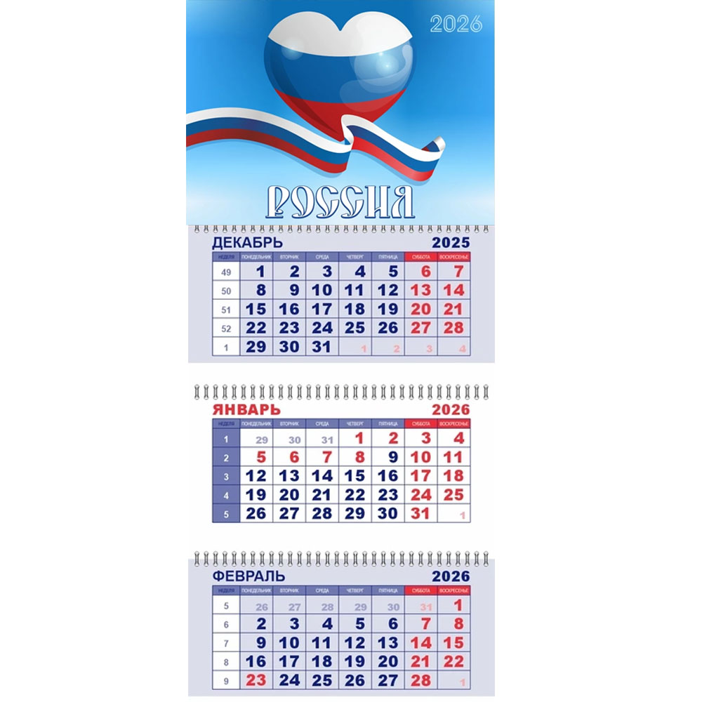 Календарь 2026 квартальный Lamark Россия. Сердце 93136