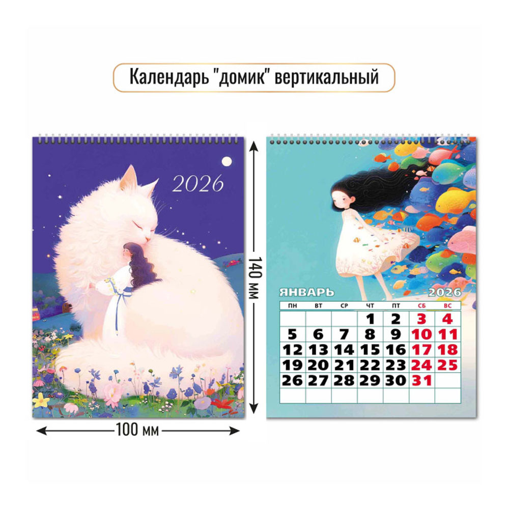 Календарь 2026 домик вертикальный Кошка 9547