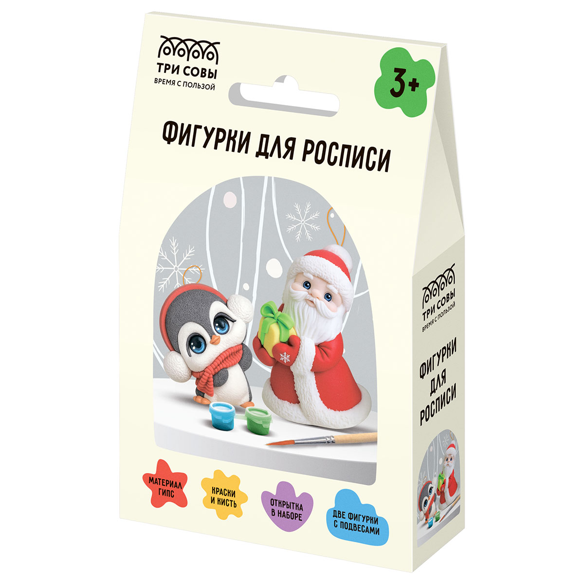Код товара: 00-27258Набор для росписи ТРИ СОВЫ Дед Мороз и пингвин, из гипса 2 фигурки с подвесом, с красками и кистью
