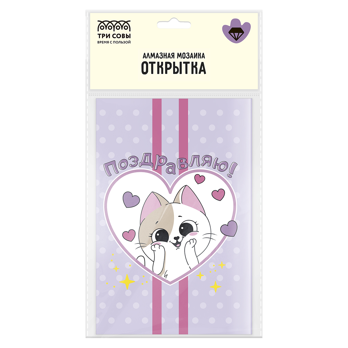 Код товара: 00-00100670Набор для творчества ТРИ СОВЫ Алмазная мозаика, открытка Поздравляю АМО_65753