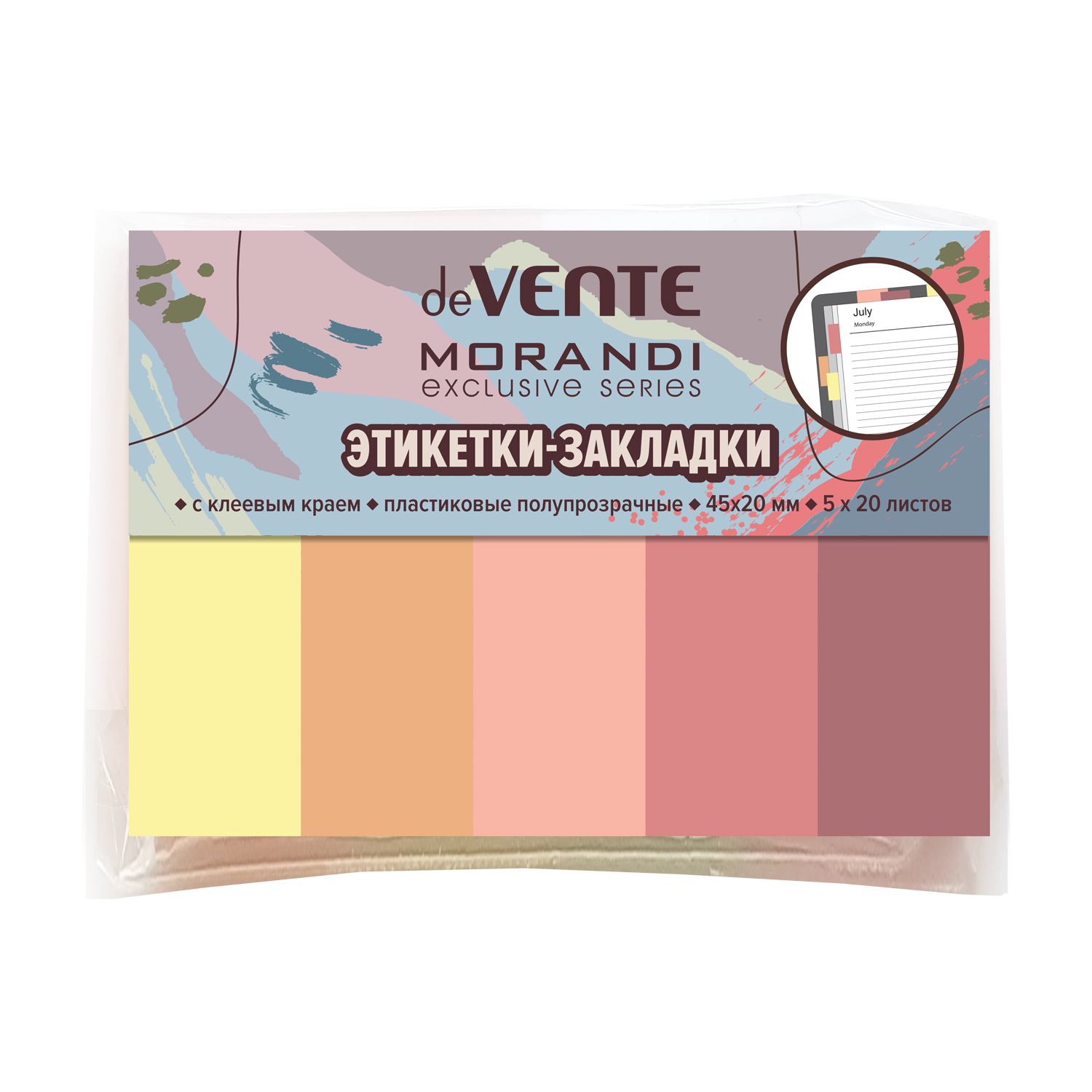 Закладки самоклеящиеся 44*12мм 8цв*20л пластик deVENTE Marandi 2011456