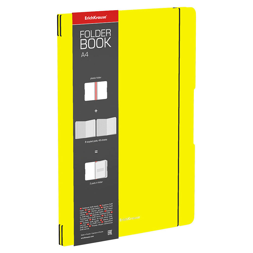 Тетрадь 96л/А4 ErichKrause FolderBook Neon съемная пластиковая обл.,желтая 56115