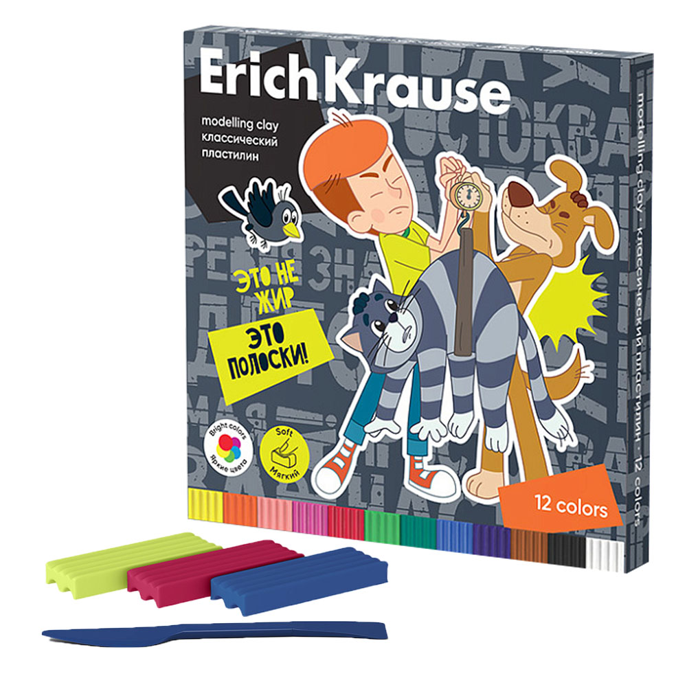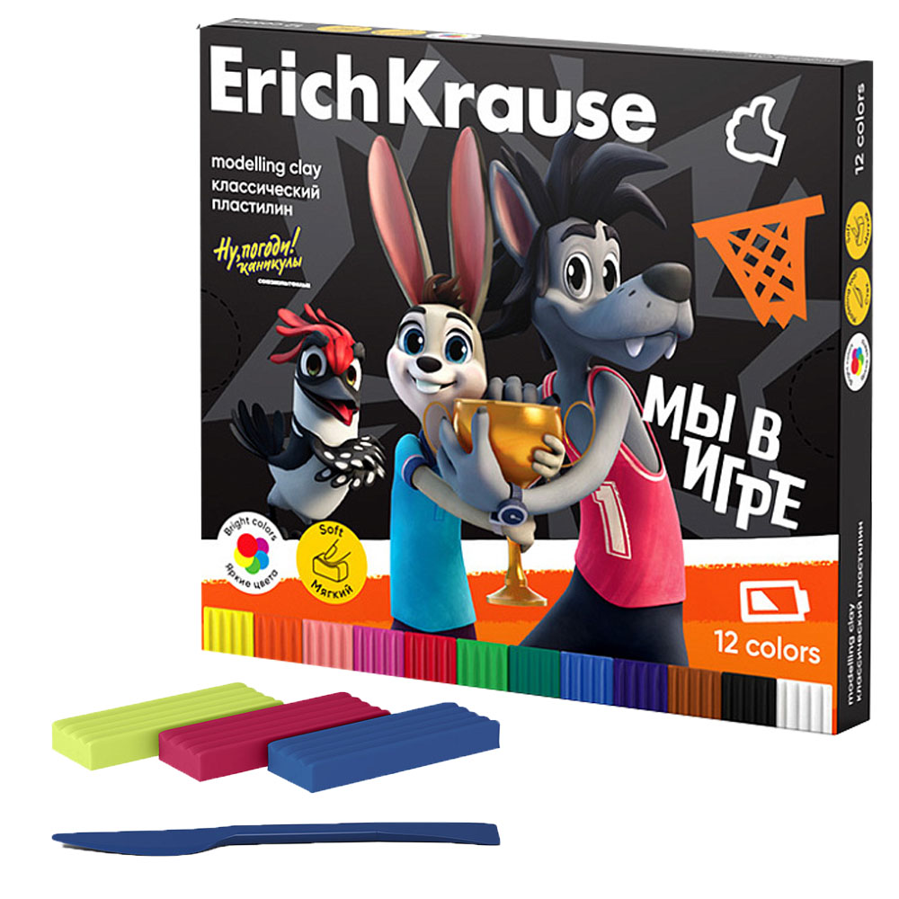 Код товара: 00-88587Пластилин 12цв. ErichKrause классический Ну, Погоди! Каникулы 180г 61571