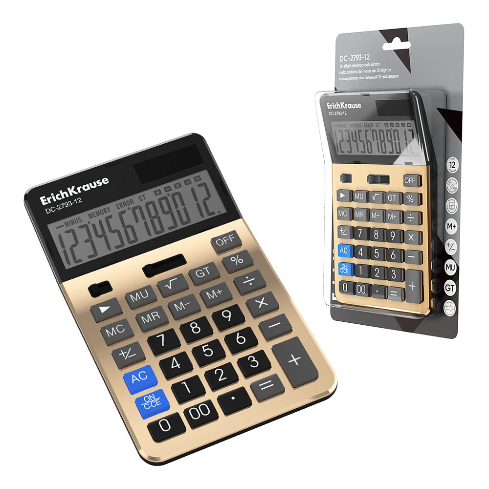 Код товара: 00-88574Калькулятор настольный ErichKrause DC-2793-12 (12 разр) золотой 62753