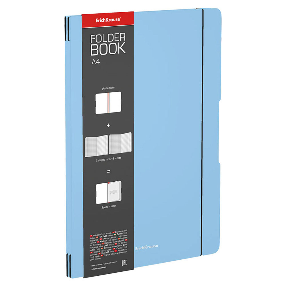 Код товара: 00-88585Тетрадь 96л/А4 ErichKrause FolderBook Pastel съемная пластиковая обл.,голубая 56123