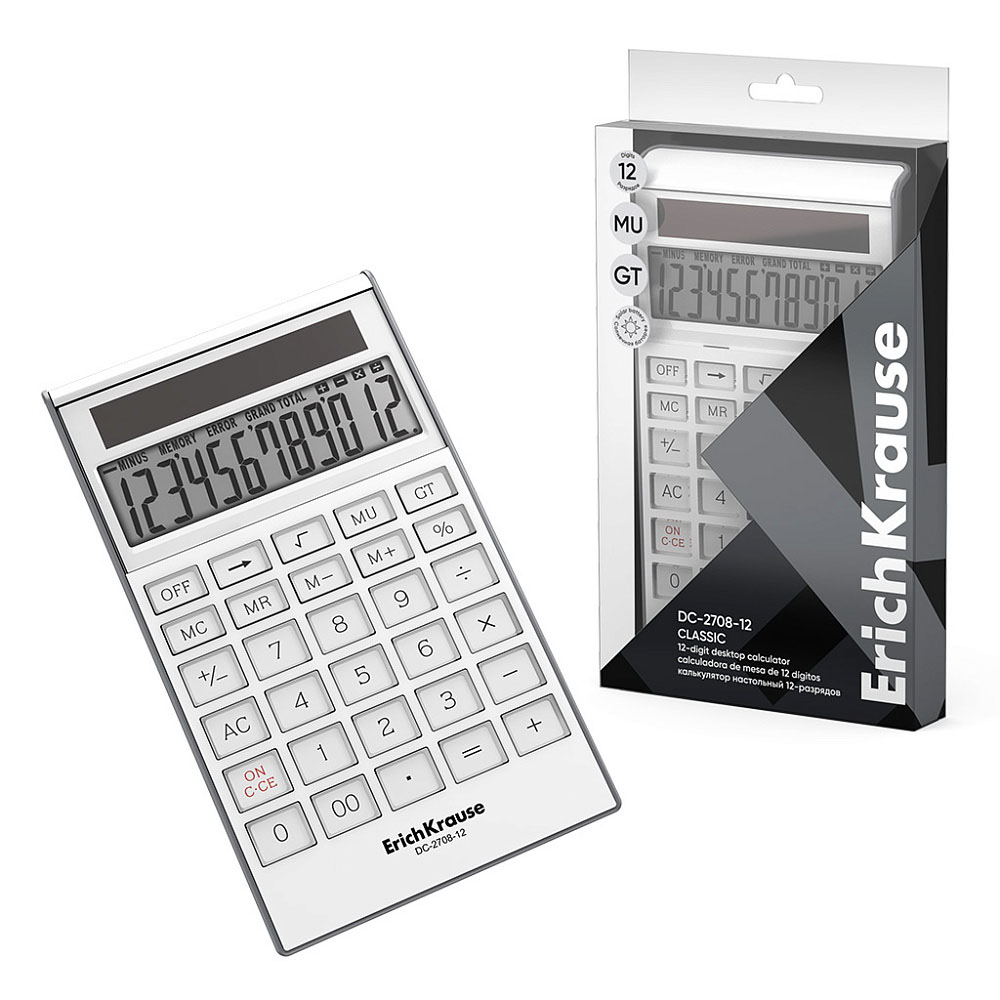 Код товара: 00-88576Калькулятор настольный ErichKrause Classic DC-2708-12 (12 разр) белый 62004