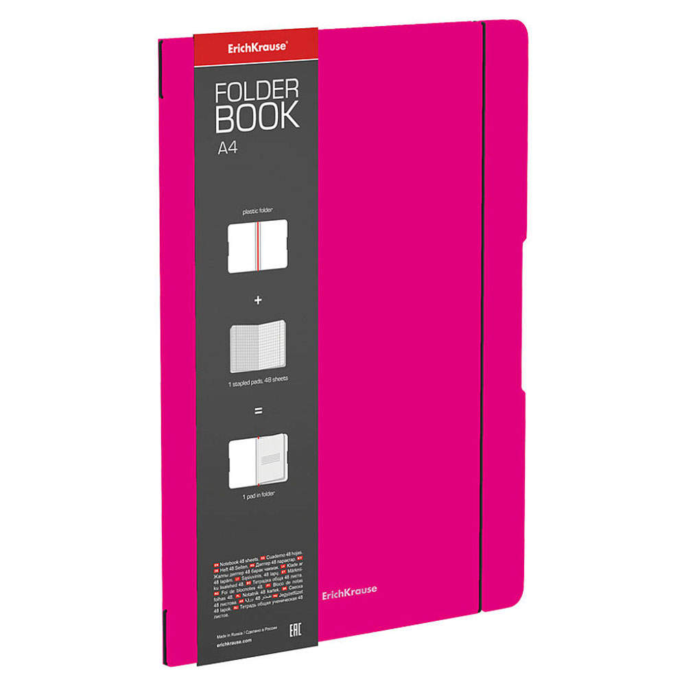 Код товара: 00-88581Тетрадь 48л/А4 ErichKrause FolderBook Neon съемная пластиковая обл.,розовая 56102