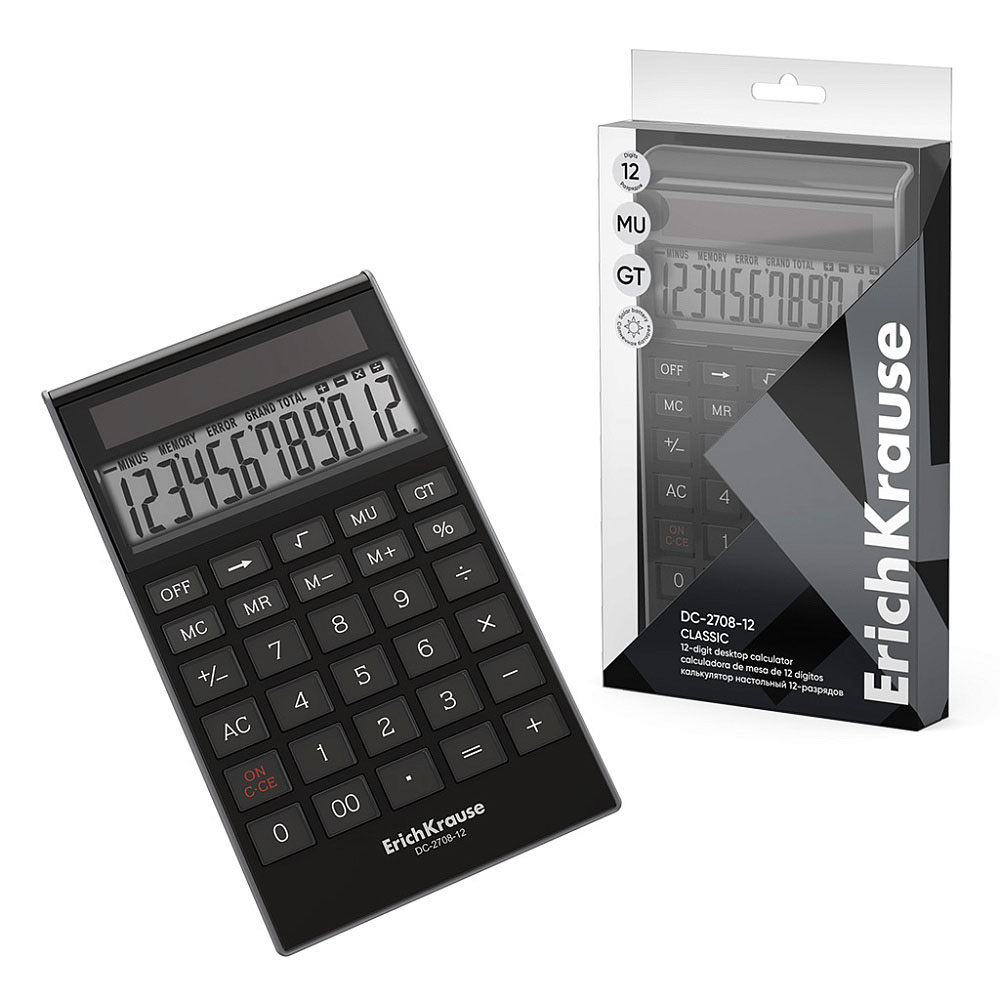 Код товара: 00-88575Калькулятор настольный ErichKrause Classic DC-2708-12 (12 разр) черный 62003