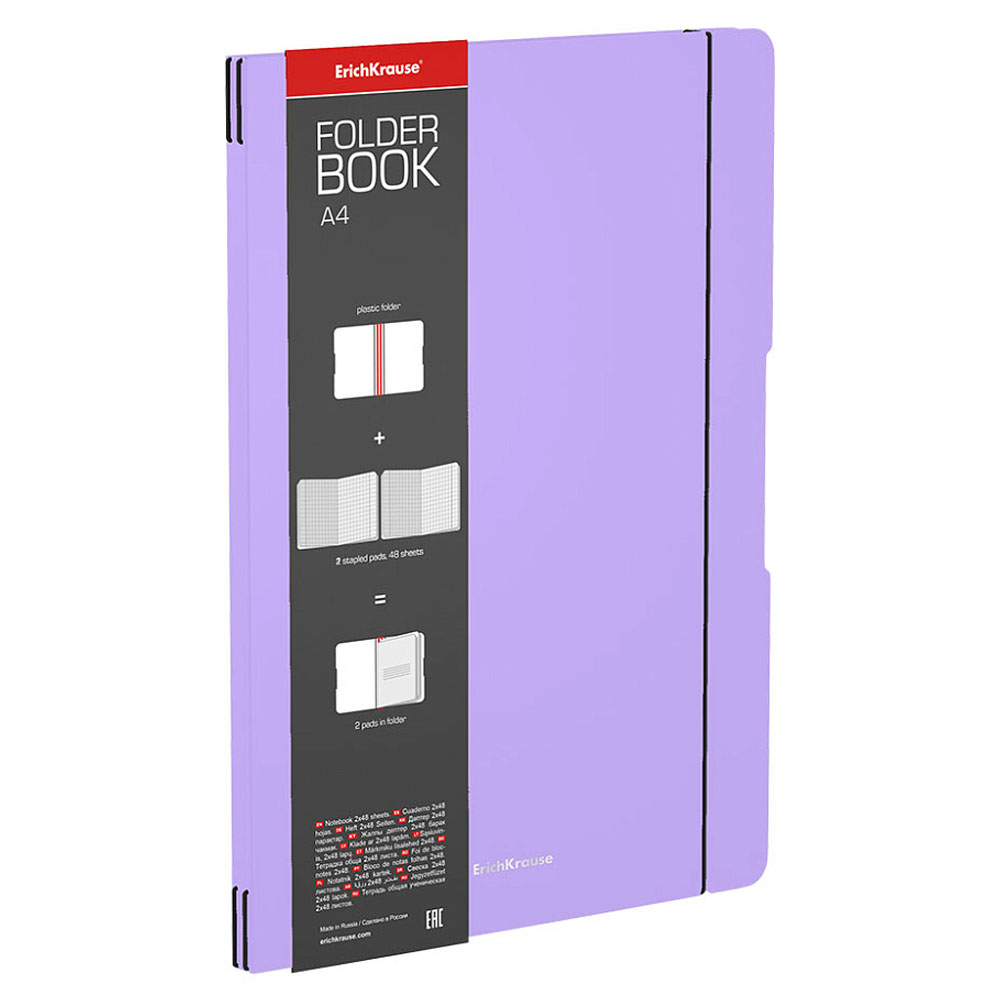 Код товара: 00-88584Тетрадь 96л/А4 ErichKrause FolderBook Pastel съемная пластиковая обл.,фиолетовая 56119